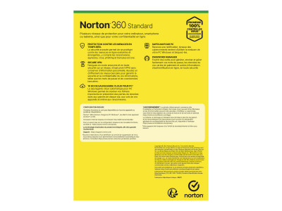 Norton 360 Standard - Version boîte (1 an) - 1 périphérique, espace de stockage de cloud 10 GB - Mass Market - Win, Android, iOS, Mac - français