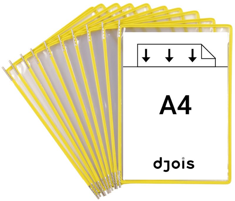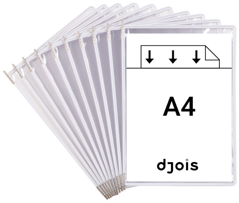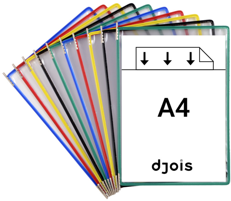 pochette en PVC anti-reflet, cadré de fil d'acier avec, bord en couleur, ouvert en haut, incl. 5 cavaliers 50 mm, en pack de 10 pièces, (113001),