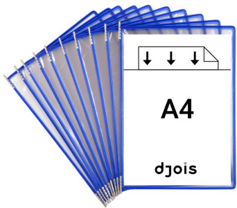 pochette en PVC anti-reflet, cadré de fil d'acier avec, bord en couleur, ouvert en haut, incl. 5 cavaliers 50 mm, en pack de 10 pièces, (113003),