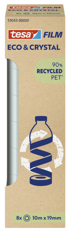 transparent, film support en plastique fabriqué à 90%, avec des bouteilles PET recyclées, entièrement transparent, avec une forte adhérence, indéchirable, PACK ECO, contenu: 8 rouleaux, (59044-00000-00)
