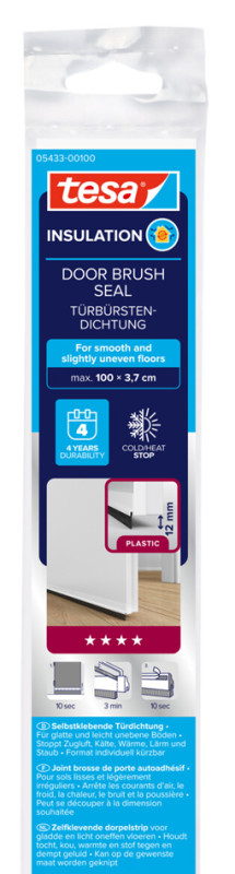 12 mm x 1m, pour les sols en textile, avec bords élastiques,, largeur d'interstice jusqu'à 15 mm, stoppe bruit, poussière,, courants d'air et froid, (05433-100-0 / 05433-22-9 / 05433-00022-09),