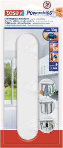 einfaches Befestigen ohne Schrauben, für starken Halt, bis zu 3 kg Gewicht, fomrschönes Design, geeignet für die, Verklebung auf Glas, Holz, Kunststoff, Kacheln, beinhaltet: 1 Hakelnleiste + 4 Strips Large, (58095-00000-02 / 58095-00-02 / 58095-0-2)