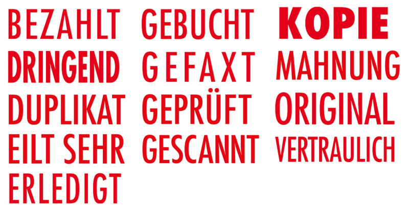 . Boîtier en matière plastique, d'auto-encrage, comprenant un tampon d'encre rouge, de la taille d'impression: 14 x 38 mm, tampon encreur de remplacement convenable: E / 20 (152225)