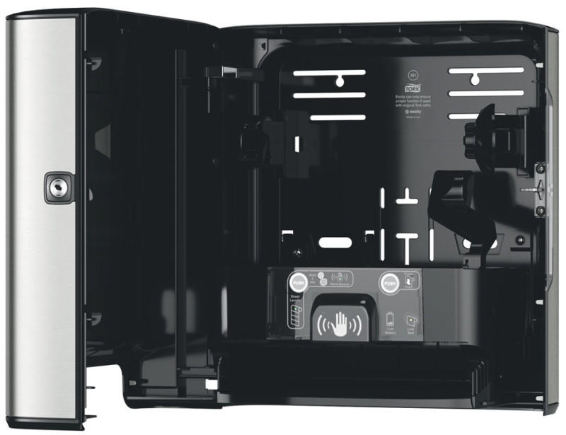 système: H1, matériau: inox/plastique, avec capteur et, protection contre les traces de doigts, convient pour le, prélèvement feuille à feuille,, adapté pour recharge TORK H1, (460001)