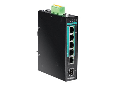 TRENDnet TI-PG541 - Commutateur - 4 x 10/100/1000 (PoE+) + 1 x 10/100/1000 + 1 x Gigabit SFP - Montage sur rail DIN - PoE+ (120 W) - Conformité TAA
