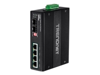 TRENDnet TI-UPG62 - Commutateur - non géré - 4 x 10/100/1000 (PoE+) + 2 x Gigabit SFP - Montage sur rail DIN, fixation murale - PoE+ (240 W) - Tension CC - Conformité TAA