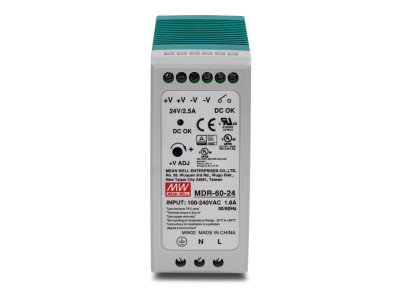 L'alimentation électrique rail DIN industrielle à sortie simple de 60 W de TRENDnet, le modèle TI-M6024 (Mean Well MDR-60-24), fournit une alimentation jusqu'à 60 watts au matériel PoE industriel tels les switches, les caméras réseau et les points d'accès Wi-Fi. Cette alimentation électrique est fournie avec un système de fixation rail DIN et une protection contre les surcharges de courant.