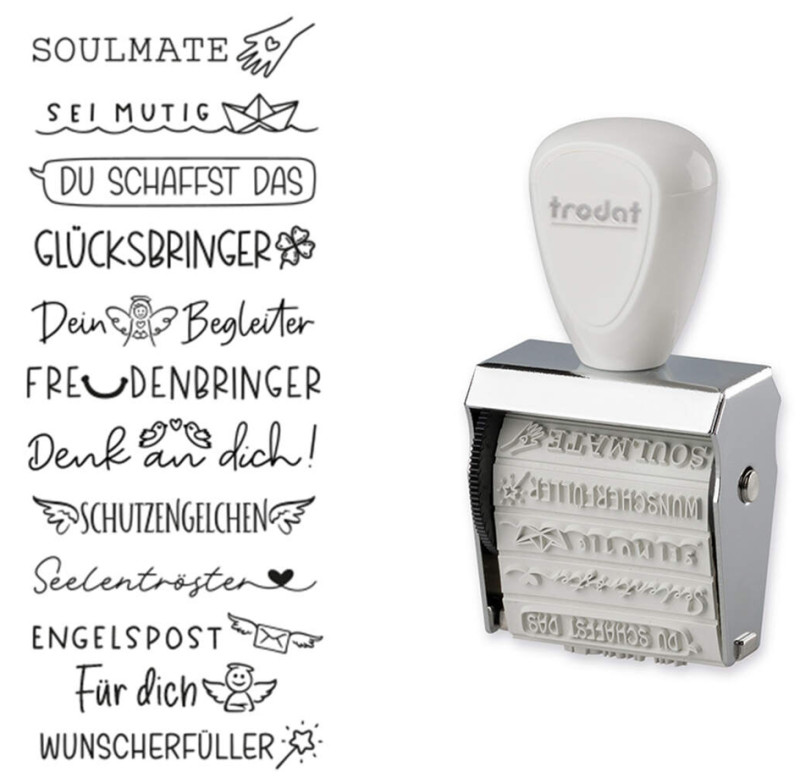 Handstempel, 12 Abdruckmotive, Motivwechsel durch Drehen,, max. Abdruckgröße: 30 x 5 mm, Lieferung inkl., 1 Stempelkissen mit 3 Farben, (198204),