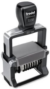 boîtier: acier inoxydable brossé, couleur tête de préhension, noir, hauteur d'écriture de chiffre: 5 mm, autocolorant,, coussin encreur de rechange: 6/56,, dimensions: (L)98 x (P)57 x (H)167 mm, (5558PR4 / 120198)