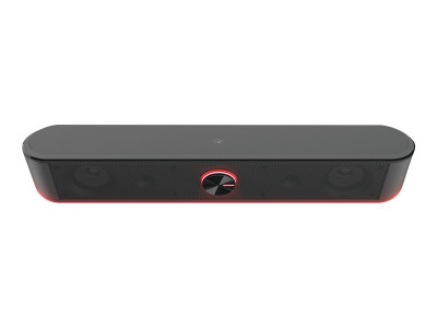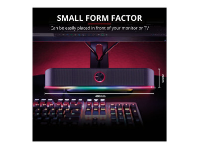 Les enceintes stéréo ne doivent pas occuper beaucoup de place sur un bureau. Le Trust GXT 619 Thorne est une barre de son compacte dédiée aux jeux vidéo. Avec un son stéréo limpide d'une puissance de crête de 12 W et un éclairage d'ambiance RGB, cette barre de son est la solution idéale pour tous les gamers qui veulent gagner de la place sans sacrifier l'expérience de jeu.