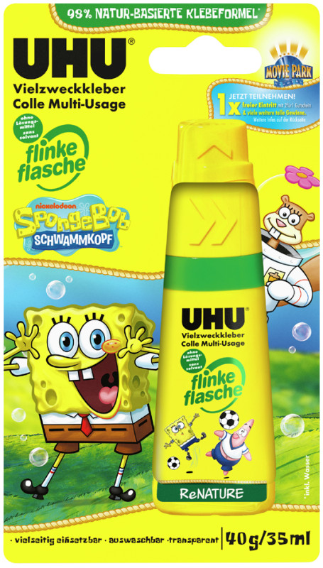 100 g, flacon souple en plastique au motif Bob l'éponge,, transparent, tête pour application par points, lignes et, surfaces, rechargeable, lavable à 40 degrés, sans solvants, (46285/7008673),