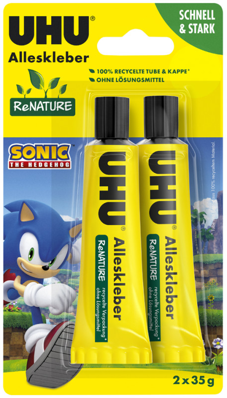 transparent, sèche rapidement, résiste à l'eau, inodore,, retouchable, sur carte blister au motif SONIC, contenu: 2 x 35 g, (9000361/7006396),
