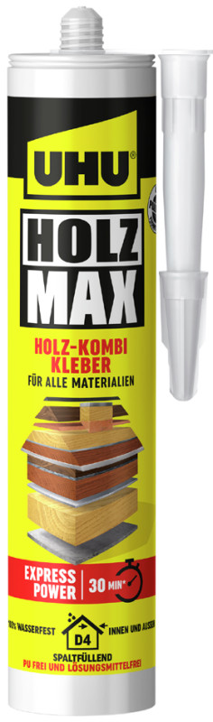 extra stark, wasserfest, diisocyanatfrei, zum Kleben, von Holz auf Holz und auf fast allen Baumaterialien,, fugenfüllend, tropft nicht, UV-beständig, dauerhaft flexibel, witterungsbeständig, Farbe: Holz (beige), (51305)