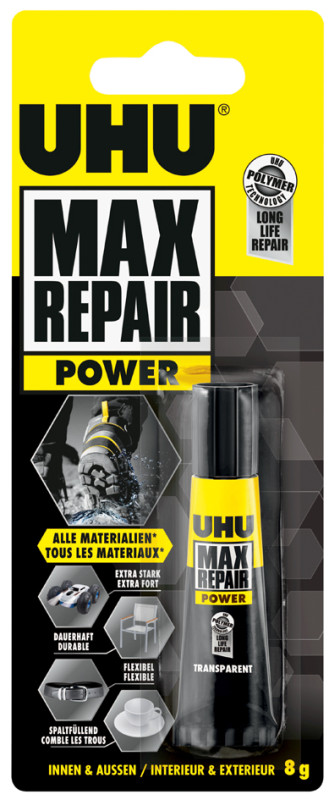 transparent, für alle Reparaturen, High Tech Polymer, Formel, extrem stark, flexibel, wasser- & spülmaschinenfest,, fugenfüllend, überstreichbar, temperaturbeständig von -40, Grad bis + 120 Grad, im Blister, (45820)