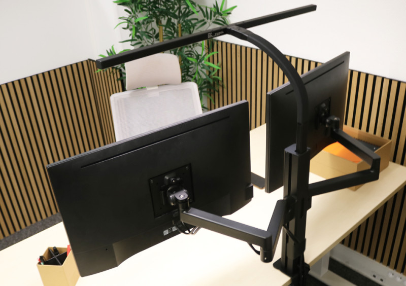 Lieferung inkl. Doppel-Monitorhalter AXIO, Leuchte kann, einfach in die Monitorhalterung geschoben werden,, platzsparend an jedem Schreibtisch, (400207201),