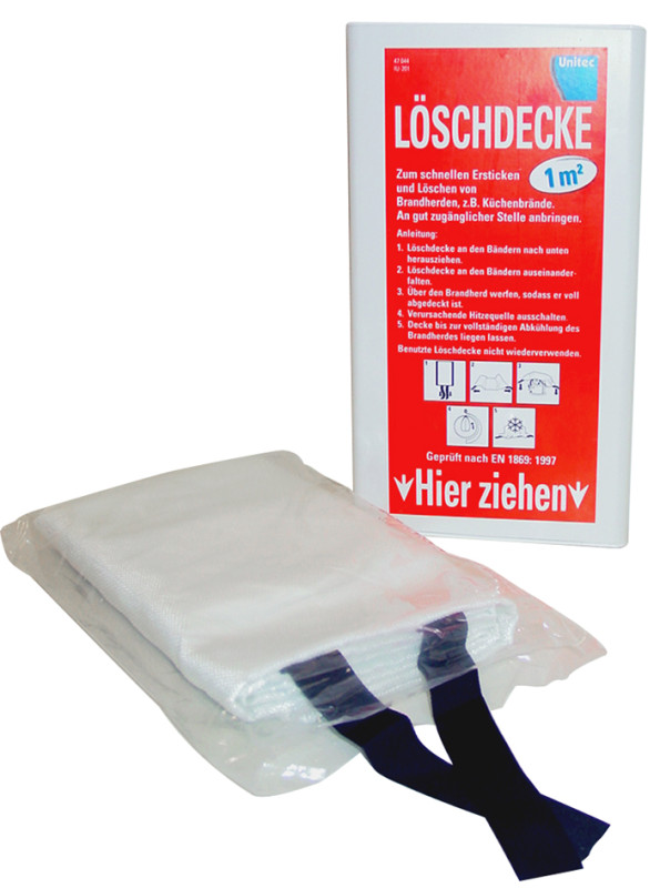 pour rapidement étouffer ou éteindre les foyers d'incendie,, avec une dragonne à accrocher dans les espaces à risque,, dimensions: (l)1.000 x (L)1.000 mm, (47044),