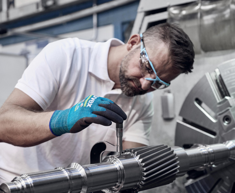poignet tricot, matériel: bambou-viscose, HPPE, acier, poly-, amide, élasthanne, revêtement: polymère Xtra-grip, pour les, zones sèches et humides/huileuses, noir/vert, en paquet de 10 paires, (6009008)