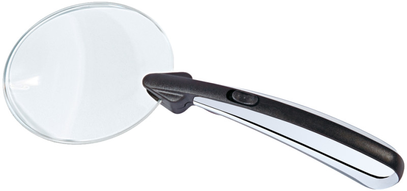 80 mm, lentille en plastique, poignée courbée aspect noir/, chrome, grossissement: x 2,2, piles fournies (3 piles bouton, 1,5V LR1130), dans une boîte transparente suspendu, (271 7548),