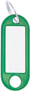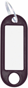 en plastique, avec une étiquette blanche, inscriptible et, amovible, dimensions: (L)52 x (P)21 x (H)3 mm, contenu : 100 porte-clés, (262 801805),