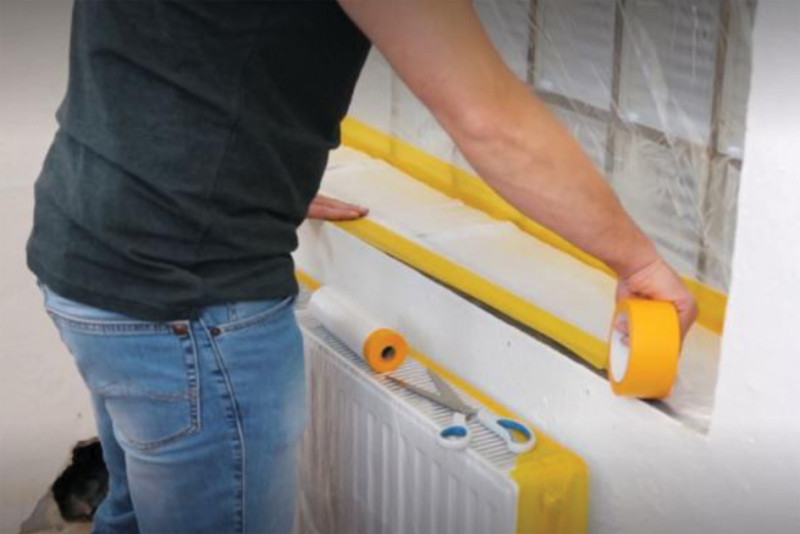 combinaison d'un ruban doré professionnel et d'un film de, masquage HDPE, ruban doré avec adhésif acrylique,, adhérence moyenne, épaisseur du film: 20 my, convient à, l'intérieur & l'extérieur, résiste aux UV jusqu'à 60 jours, (580153000)