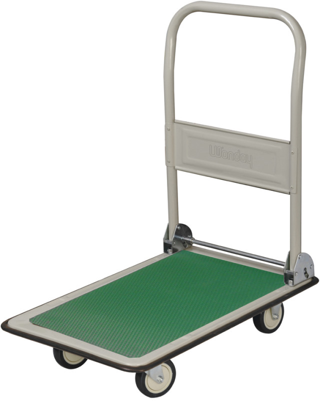 plate-forme: en tôle d'acier embouti, revêtement vert, antidérapant, pare-choc de protection, 2 roues fixes et 2, roues pivotantes, dossier de poussée rabattable, 4 roues, pleines, diamètre: 125 mm, livré démonté, (MCH500571)