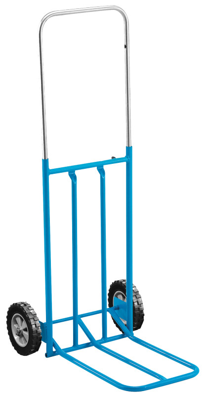 poignée télescopique, bavette robuste en acier, rabattable,, diamètre des roues: 150 mm, matériau des roues: PEHD sur, jante en plastique, matériau du diable: tube acier finition, époxy, couleur: bleu / argent, (MDI100271)