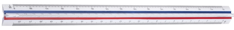 graduation précise, triangulaire, dimensions en mètre et en, centimètre, avec 3 gorges creuses colorées, longueur: 30 cm, graduation: 1:20, 1:25, 1:33 1/3, 1:50, 1:75, 1:100, (FTN350562),
