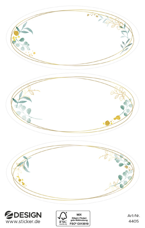 ovale avec cadre ornementé, en papier, champ inscriptible, blanc, cadre en relief, détachable, inscriptible à la main, contenu: 3 planches de 3 étiquettes, (4405),